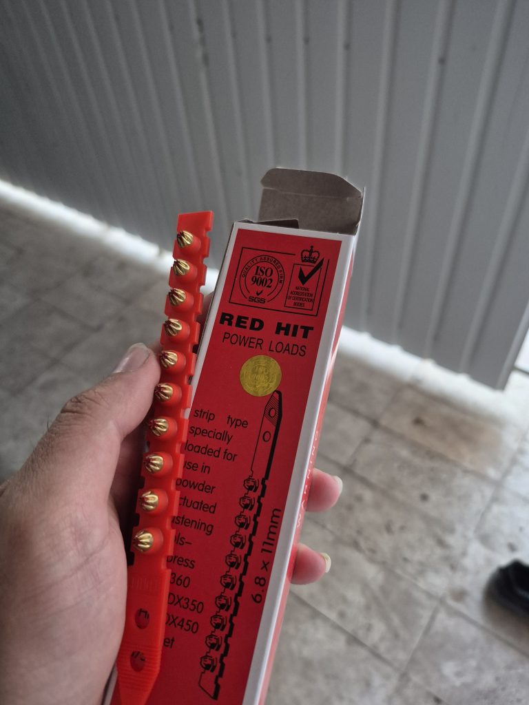 از میخ و چاشنی بتن 32 ردهیت (RED HIT) برای اتصال ورق فلزی با ضخامت ۵ میلیمتر به بتن استفاده میشود. این محصولات در اتصال انواع سازهها، دکوراسیون داخلی و نمای خارجی نیز به کار میروند. تفنگ میخکوب با قرار دادن میخ و چاشنی بهصورت تکی یا خشابی، و با فشردن شاسی، چاشنی را منفجر میکند. این انفجار باعث پرتاب میخ و سوراخ شدن سطح موردنظر میشود.